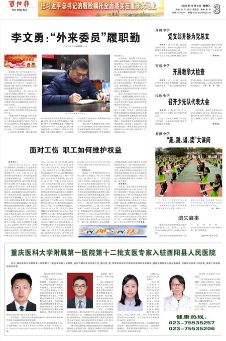 重庆医科大学附属第一医院第十二批支医专家入驻酉阳县人民医院