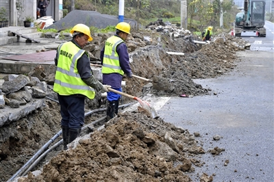 本报讯 (全媒体记者白凤英 刘琴文/图) “污水管网改造结束后,就再不用担心门前公路变成河沟了!”12月7日,记者在天馆乡天馆村路段管网施工现场看到,工人们有的在探地况,有的在推土,有的把涵管放进已挖好的下水道里准备安装,整个工地忙得热火朝天。