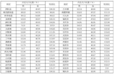 根据酉阳县第七次全国人口普查结果,现将2020年11月1日零时我县39个乡镇(街道)的人口性别构成情况公布如下: