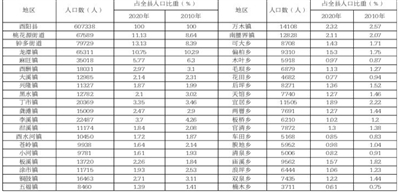 与2010年第六次全国人口普查相比,2个街道常住人口所占比重增加7.23个百分点,19个镇常住人口所占比重减少4.53个百分点;18个乡常住人口所占比重减少2.70个百分点。