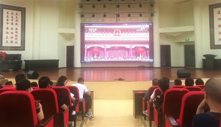 7月1日上午8时,庆祝中国共产党成立100周年大会在北京天安门广场隆重举行,酉阳实验中学全体教职工在该校多功能厅集中收看电视直播,共同祝福伟大的祖国繁荣昌盛,国泰民安。