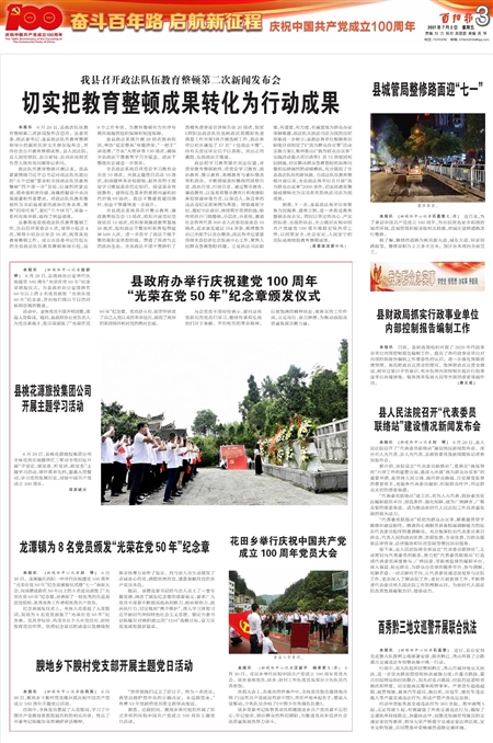龙潭镇为8名党员颁发“光荣在党50年”纪念章