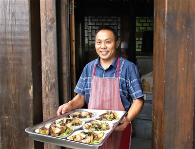 “吃”是农家乐经营中的第一件大事。何钢的农家乐在饮食上下足了功夫:必须用柴火炒菜、煮饭;荤菜主要从村民手中收购土鸡、土鸭、腊肉、熟饲料猪肉;素菜临时喊村民在地里现摘。