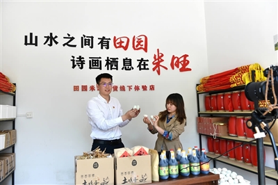 在乡村振兴工作中,麻旺镇米旺村驻村第一书记黄书博利用该村丰富的农特产品优势,和队员们一起带货直播,帮助村民销售麻旺鸭、麻旺醋、干竹笋、土家腊肉、有机大米等特色农产品,让村里的“土货”搭上网络电商“快车”。
