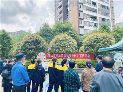 本报讯 (融媒体中心记者刘 琴文/图) 近日,县城管局、桃花源街道、桃花源街道城北社区联合重庆恒奥环保,在山水嘉苑小区开展《重庆市生活垃圾管理条例》普法宣传活动(如图),提高居民垃圾分类意识。