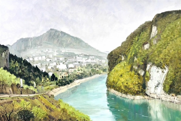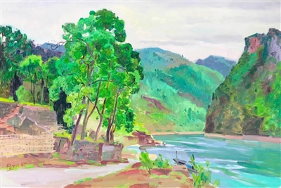 中国美术家协会会员、重庆市美术家协会副主席侯宝川,以自己独到的与自然对话的方式,率性自为的表达,感悟龚滩的春天,让大众从作品视觉愉悦的享受转向心灵的沉思,也因其简洁的构图、概括的色彩、洗练的笔法,创作出来的龚滩作品独具视觉张力,展现乡土情怀。
