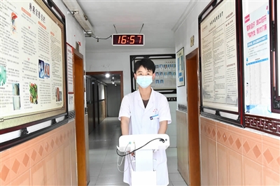 护士是劳动强度很大的职业,体格强壮、精力充沛是男护士的优势。作为男护士,搬挪器械、转运病患等费力的活儿,罗寒杰总是冲在前面,他说,“我力气大,这种活儿我来干。”