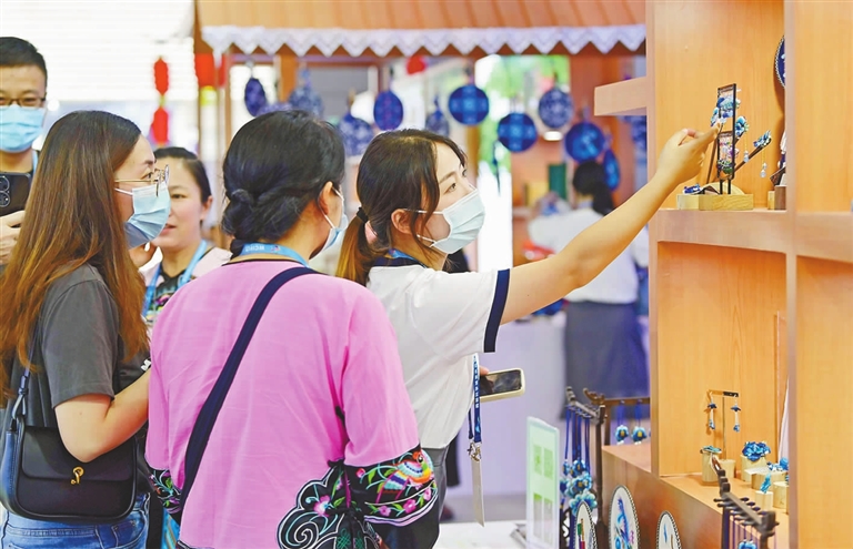 “此次参展,我们带来了酉州苗绣系列的扇子、饰品、挂屏等,有实用大方的各类日用品,也有玲珑精巧的小件饰品,展品典雅端庄,各具特色。展出2小时就销售了5000多元。”酉州苗绣非遗传承人陈国桃说,来到酉阳展厅的顾客,不仅可以购买到自己喜欢的酉州苗绣,还能现场体验缝制苗绣的乐趣。