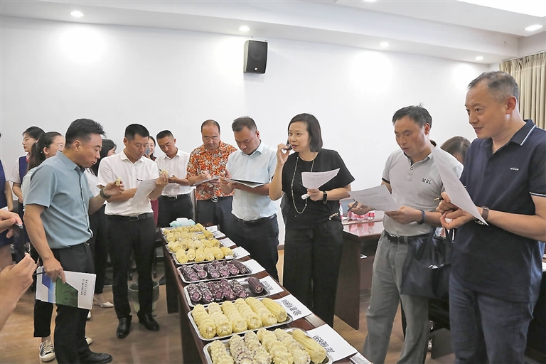 本报讯 (融媒体中心记者汪登平 杨承军文/图) 日前,重庆鲜食玉米新品种新技术展示品鉴会在花田乡举办。来自全国各种业公司的甜糯、花糯、白糯、黑糯、甜脆等146个鲜食玉米新品种集中亮相,数十个鲜食玉米及其延伸产品通过品鉴,得到一致好评;大豆—鲜食玉米,鲜食玉米与青蒿、紫菀、前胡等多种中药材带状复合种植技术得以展示;鲜食玉米轻简化种植技术通过专家组验收。