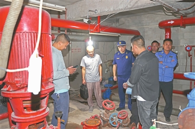 联合检查组先后对新希望佳苑、亚伸广场、龙腾盛世等地进行了实地检查。每到一处,检查组都仔细听取了各单位、场所负责人就消防安全工作开展的情况汇报,重点查看了安全管理制度、日常值班人员安排,灭火和应急疏散预案的制定,消防设施器材是否完好有效,消防通道、安全出口是否畅通,是否有违规停放电动自行车和违规充电行为,消防控制室人员是否持证上岗,自动消防设施是否完好有效等情况。并现场对屋顶消防栓、室内消火栓进行测试。