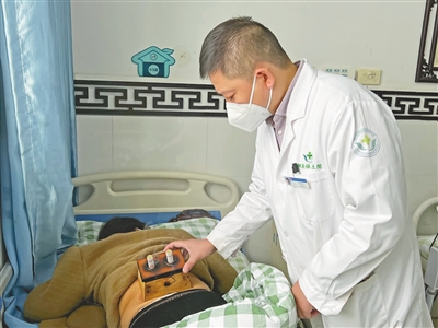 11月29日,铜鼓镇卫生院中医科的病房里住着10多名患者,魏云鹏和同事忙得不可开交。这边刚为病人把艾条点上,那边的病人又在等着做针灸。