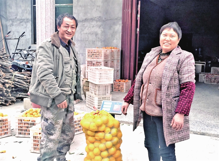 本报讯 (融媒体中心记者白凤英文/图) “这袋56斤。”“好。”12月14日,在酉水河镇长远村1组,一家堆满脐橙的院坝里,张爱东和妻子正在将脐橙过秤(如图)。