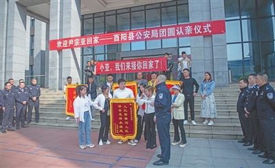 在县公安局组织的认亲仪式现场,民警宣布鉴定结果,蔡女士一家人紧紧拥抱在一起。民警端上一碗象征团圆的汤圆,向蔡女士一家人表示祝贺。