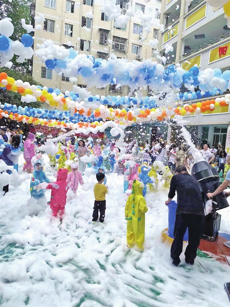 此次活动中,小班以“爸爸陪我‘趣’玩水”结合主题课程“干净酉州娃”,孩子们在水与身体的互动中开展“枪林弹雨”“水上冲浪”“泡泡大战”等游戏,体验集体活动的乐趣,体会爸爸陪伴的幸福。中班以“职业初体验·我是小大人”结合主题课程“快乐的工作达人”,创设“考古家”“小木匠”“消防员”“交通警察”等游戏场景,用职业体验游戏让幼儿发现自己的兴趣所在,体验“小大人”的快乐。大班以“今夜不回家,我们共成长”结合本月“快乐童年,生命旅程”活动主题开展了篮球赛、自助晚餐、露天电影、帐篷畅游等活动,用独立夜让幼儿感受勇敢、坚强的快乐,收获成长的美好回忆。