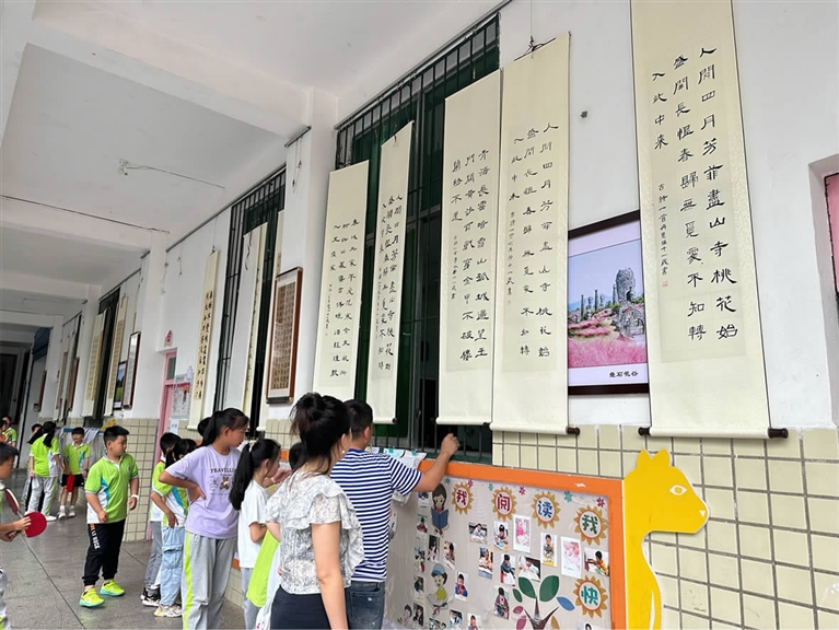 为贯彻落实党的二十大精神和习近平新时代中国特色社会主义思想,有效推进《关于全面加强和改进新时代学校美育工作的意见》,激发师生艺术创作热情,提升师生艺术素养,近日,县桃花源小学举办了以“艺韵桃源·快乐六一”为主题的师生书画作品展。