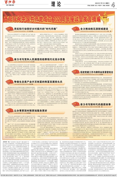 酉阳庆祝中国共产党成立102周年座谈会发言摘编