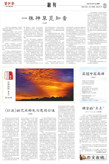 其次,诗性的恣意挥洒使小说骨力雄健、风韵清朗。小说中有多处气势恢宏、隽永雅正的诗意描写,使得这样一部洋溢着革命思想的文学作品中,没有丝毫刻板生硬的说教和口号,自始至终保持着文风之硬朗、韵味之悠长。“人,不能低下高贵的头,只有怕死鬼才祈求自由;毒刑拷打算得了什么?死亡也无法叫我开口!对着死亡我放声大笑,魔鬼的宫殿在笑声中动摇……”(《我的自白书》成岗),“为人进出的门紧锁着,为狗爬出的洞敞开着……我希望有一天地下的烈火,将我连这活棺材一起烧掉,我应该在烈火与热血中得到永生!”(《囚歌》叶挺)……吟诵这一首首节奏铿锵、悲壮豪放的诗句,眼前就会涌现出那群衣衫褴褛、铁锁枷身的红岩烈士,昂首挺立于天地乾坤之间;脑海就会映现出那阴森黑暗的牢房中,江姐和狱友们把对新中国的向往和祝福,一针一线绣进光彩夺目的五星红旗。隋代陆法言在《切韵序》中提到:“凡有文藻,即须明声韵。”《红岩》全书共查有数十处与诗歌相关的文学设计,其中格言、警句和革命新诗比重较大。诗歌就是声韵文学的最高形式,和谐的声律能引发人们内心的共鸣,加深读者对文学的感受,提升文学艺术的美感。《红岩》诗性的恣意挥洒开创了现代文学革新的先河,充分展示了其文艺创作的时代特色。