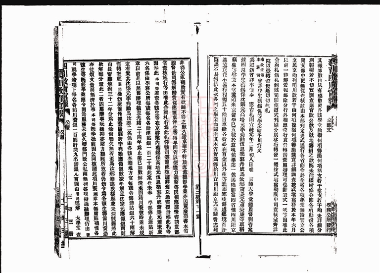 1902年农历五月,四川总督岑春煊奉旨兴办四川省城高等学堂,后因派教习前往东洋考察而缓办,至光绪1904年正月学校才正式开学。1904年6月,作为首批学生之一的蔡锡保学成卒业。之后,经四川总督锡良会同翰林院编修胡峻等会考,蔡锡保以“一日奏文十二艺”的才华,与盛绍麟、伍思乐等五人被保送进入京师大学堂。为了让他们安心学习,四川学务公所给予每人每年一百二十两白银的资助。