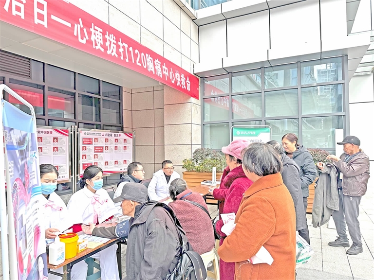 本报讯 (融媒体中心记者唐 宇文/图)今年11月20日是第十一个“中国心梗救治日”。当天上午,县人民医院心血管内科医生在该院门诊大厅开展义诊活动,向群众普及心梗的规范救治流程。