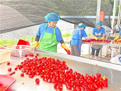 本报讯 (融媒体中心记者石玲聪文/图) 7月24日,重庆首创农业的标准化厂房内一派繁忙景象。工人们正麻利地将一袋袋色泽鲜亮的泡菜封装、打包,叉车来回穿梭,满载的货车整装待发,即将驶向千里之外的浙江市场。车间里弥漫着酸爽开胃的独特气息,这是属于“重庆味道”的收获季节。