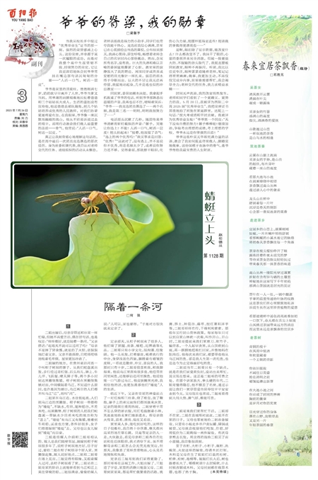 有天一早,我看见母亲从柜子里称了几十斤苞谷籽,从床下装米糠的坛子里摸出几十个鸡蛋,到大门口时又顺走了磨子上的几把毛草烟,背着背篼头也不回地往外走。太阳落土,鸡都进鸡埘了,母亲还没有回家。我和父亲几次到村口寻,都没有见人。我们焦急万分时,母亲才气喘吁吁地回来,她一屁股坐在大门槛上,有气无力地嘟囔:“看得到房子上在冒烟呢,就是喊不答应,焦死个人了,样样都好,就是隔着一条河……”