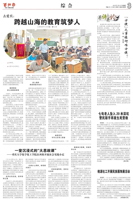 从渤海之滨到武陵山区,古爱兵和帮扶团队跨越千里,他们用行动证明,教育帮扶不是简单的“给予”,而是共同的成长;不是单向的“输出”,而是双向的赋能。“把二中校园打造成立德树人的新时代桃花源是我最大的心愿。”古爱兵说,如今这个心愿正逐步变为现实。他用自己的行动诠释了一名教育工作者的责任与担当,成为跨越山海的教育筑梦人。